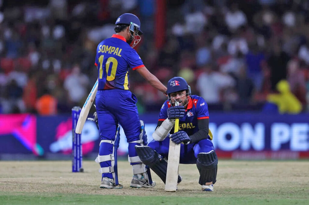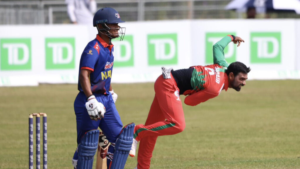 सोमपाल कामीले ८ बलमा २ छक्कासहित २० तथा सन्दीप लामिछाने १५ बलमा ११ रन जोडे । ओमानका कलिमुल्लाह, फयाज बट, अकिब इलियासले २-२ विकेट लिए । सकिल अहमद र शोएब खानले १-१ विकेट लिए । नेपाल पहिलो खेलमा क्यानडासँग १०३ रनले पराजित भएको थियो । नेपालले अब आइतबार क्यानडा र मंगलबार ओमानसँग खेल्नेछ ।