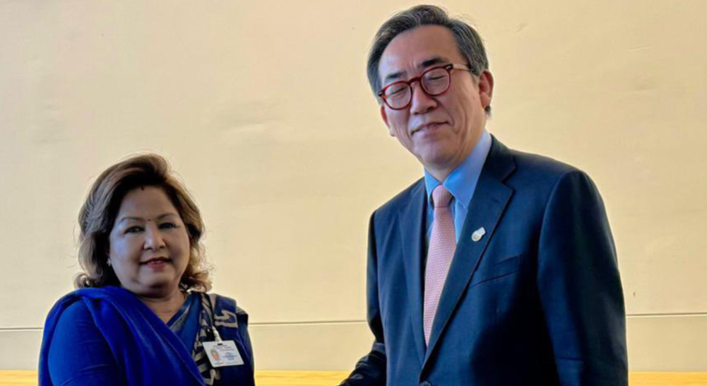न्युयोर्क — नेपालमा थप लगानी गर्नको लागि परराष्ट्रमन्त्री आरजु राणा देउवाले दक्षिण कोरियालाई आग्रह गरेकी छन् । संयुक्त राष्ट्र संघको ७९ औं महासभामा सहभागिता जनाउन न्युयोर्कमा रहेकी परराष्ट्रमन्त्री राणाले दक्षिण कोरियाका विदेशमन्त्री चो तेई–युलसँग भएको साइडलाइन द्विपक्षीय भेटवार्तामा दक्षिण कोरियालाई नेपालमा थप लगानी गर्न र थप पर्यटन आउनको लागि आग्रह गरेकी हुन् । नेपाली श्रमिक र विद्यार्थीहरुलाई दक्षिण कोरियाले भित्र्याउन खेलेको भूमिकालाई लिएर मंगलबार भएको भेटवार्तामा परराष्ट्रमन्त्री राणाले धन्यवाद दिएकी हुन् ।