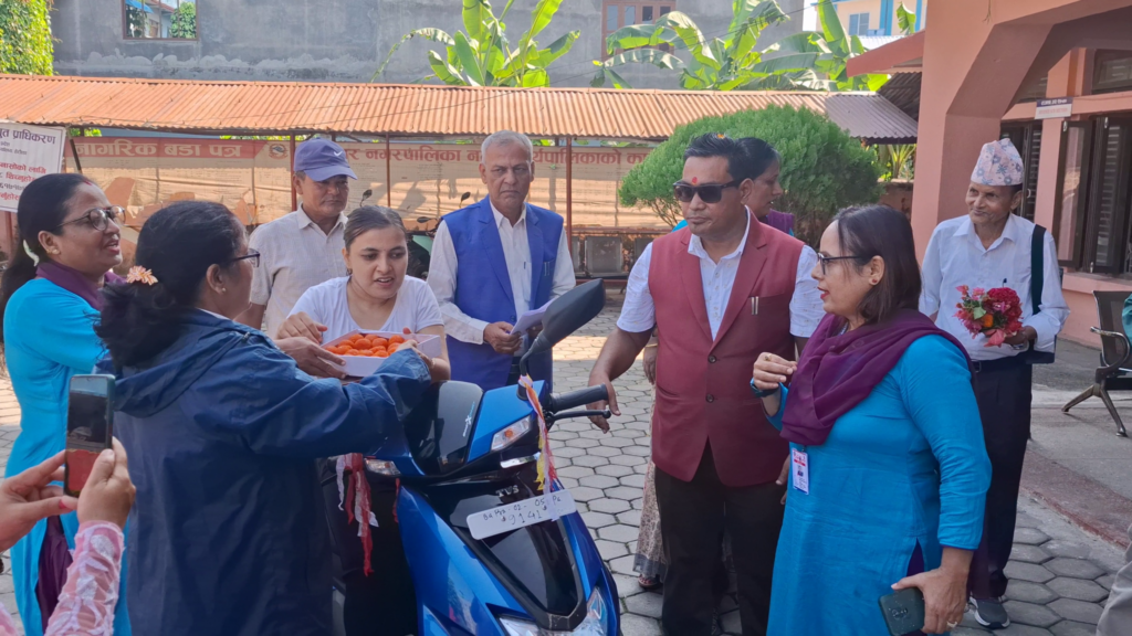 ‘रत्ननगरमा आर्थिक अभावका कारण पढ्नबाट कोही पनि वन्चित हुनु पर्दैन’, उनले भने, नगरपालिकाले अभिभावकत्व ग्रहण गर्ने प्रकृतिजस्तै विद्यार्थीहरुका लागि हो ।’ शहीद स्मृति बहुमुखी क्याम्पससम्म जान आउन सहज होस् भनेर चारपाङ्ग्रे स्कुटर प्रदान गरिएको र उनका लागि आवश्यक शैक्षिक शुल्क, स्टेसनरी लगायतका सामग्रीको लागि पनि नगरपालिकाले सहयोग गर्ने र स्नातक उत्तीर्णपश्चात् जागिरको प्रबन्ध गर्नसमेत आफू प्रतिबद्ध रहेको मेयर सापकोटाले बताए ।