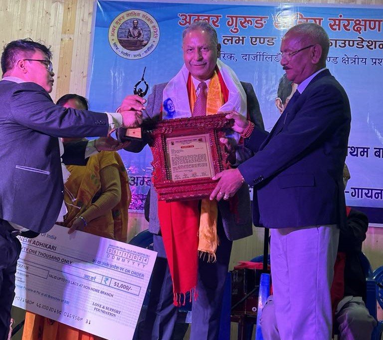 गायक एवं सङ्गीतकार पेमा लामाको प्रमुख आतिथ्यमा दार्जिलिङको मिरिकमा गत मङ्गलबार आयोजित कार्यक्रममा अम्बर गुरुङ सालिक संरक्षण समितिले गीतकार अधिकारीलाई रु ५१ हजार नगद र ताम्रपत्रसहितको पुरस्कार प्रदान गरेको हो ।